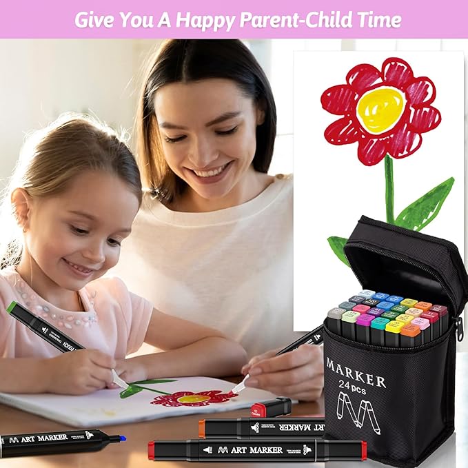 - 【24 VIBRANT COLORS】24 colors unique art marker pens bring your art to life, multiple choices, standard colors on the pen, new color system, no deviation, natural transition, natural color overlap, outstanding effect, bright color, easy to blend. Whether it's a coloring book or a masterpiece in the making, your artwork is sure to shine with these brush markers. Great as art markers, sketch markers, permanent markers, alcohol based markers, paint markers.
