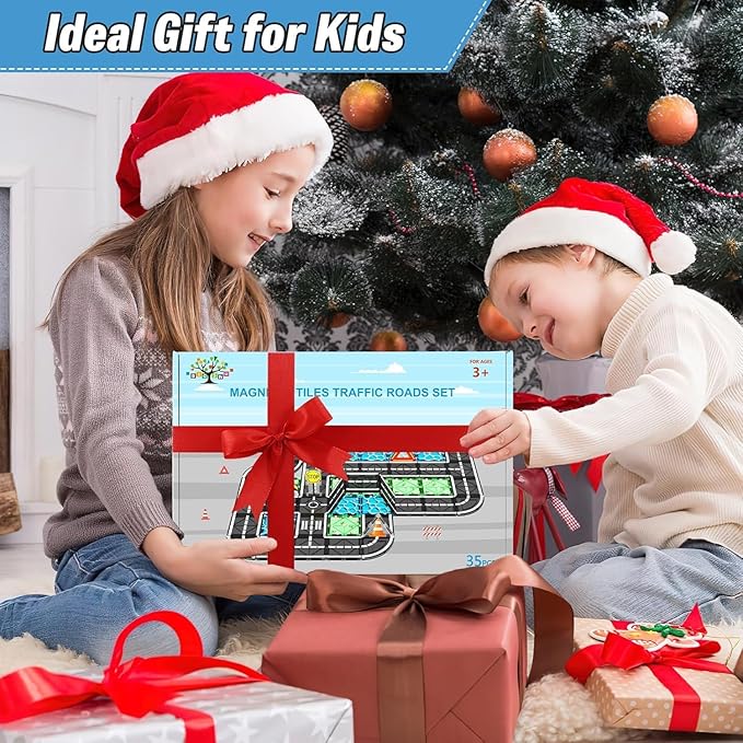 - COMPATIABLE WITH ALL MAGNETIC TILES - This traffic road themed magnetic tiles set building blocks features strong magnets that allow kids using their creativity to create various road styles . It is also highly compatible with other magnetic tiles for expanding your existing tiles. These kids toys are great for learning and could be a suitable toys for 3 4 5 year old boys girls.