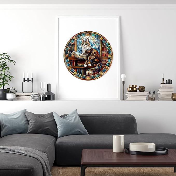 - [Wooden Jigsaw Puzzles for Adults Kids] - This maine cat library shaped jigsaw puzzle is made of high quality natural wood, safe and durable. The wooden puzzle is a colorful puzzle with clear and vibrant images that won't fade over time. Advanced laser cutting technology gives the adult puzzles very smooth edges and a very comfortable feel, protecting your hands from injury.