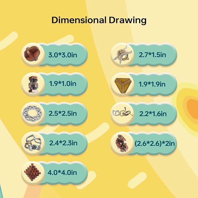 - [DURABLE AND SAFE] 3D brain teaser metal and wooden mind puzzles are well made and constructed, the IQ puzzles have great quality and held up easily and nicely, you can play or store them where you want, these logic puzzles also can be decoration at home, working desk, or coffee table.