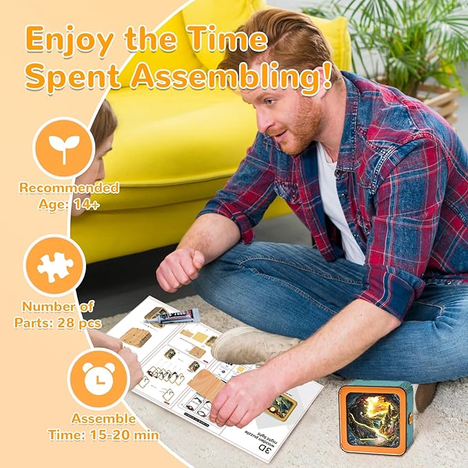 - 【Personalized 3D DIY Night Light】 This 3D night light is both a 3D wooden puzzle and a night light, both entertaining and practical. It can stimulate your imagination and creativity, can be used as a decorative item after when completed.