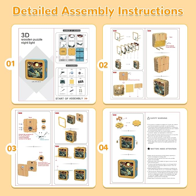 - 【Personalized 3D DIY Night Light】 This 3D night light is both a 3D wooden puzzle and a night light, both entertaining and practical. It can stimulate your imagination and creativity, can be used as a decorative item after when completed.