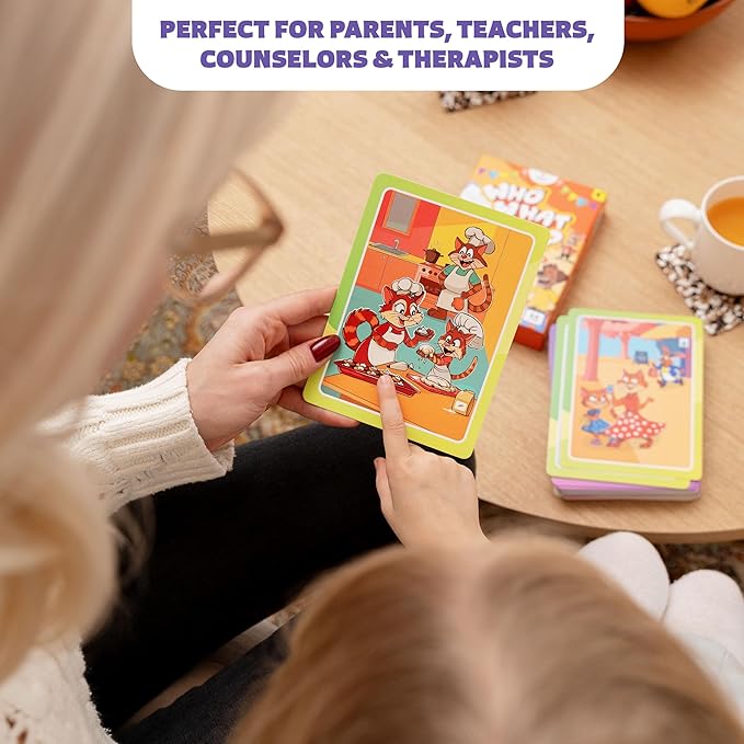 - DEVELOP EMOTIONAL & SOCIAL INTELLIGENCE – Who What Why conversation cards for kids use friendly illustrations of real-life scenarios paired with thoughtful questions to help children build empathy, improve social skills, and enhance communication.