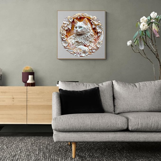 Wooden Puzzle for Adults-3D Visual Effect White Cat Wooden Puzzle Unique Shape Advanced Wooden Jigsaw Puzzle for Adult, Best Birthday Gifts,Halloween Challenge Craft (S-8.5 * 8.4in-100pcs)