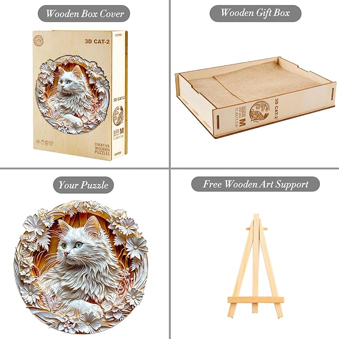 - ๐ฑ[Naked eye 3D Cat] Unique design, using a flat surface to present a 3D sense of cute cat. Let you in the process of assembling wooden puzzles, also get 3D enjoyment. Inspired by beautiful and memorable scenes in life. Build a noble and beautiful cat, and let it accompany you.
