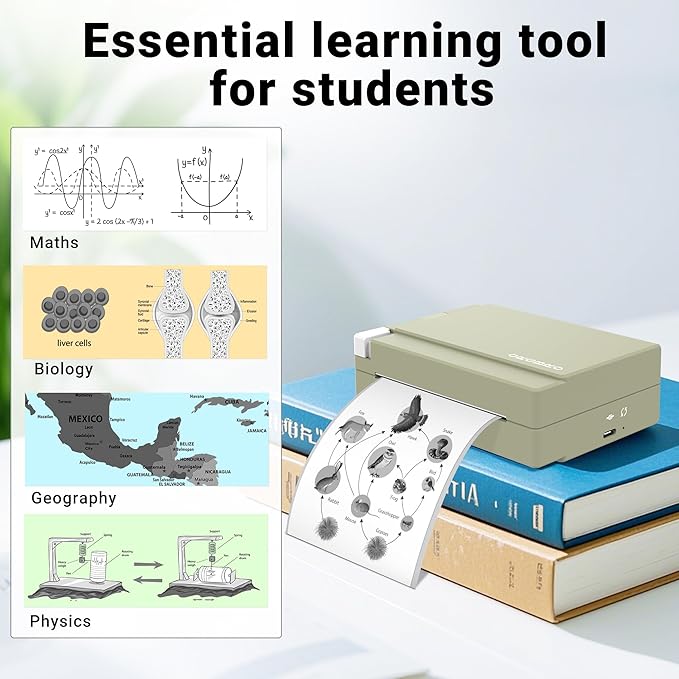 - 300 DPI HD Photo Printing: This thermal sticker printer with 300 DPI resolution (higher than standard 200 DPI) delivers crisp, detailed images and text—perfect for printing photos, detailed to-do lists, or study notes without ink or toner. Also protects your child's eyes during study or play