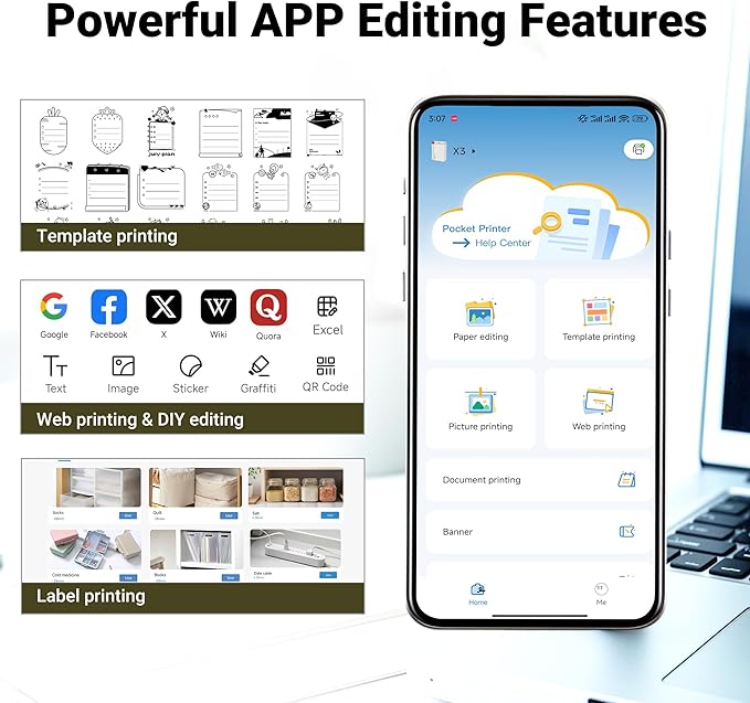 - Bluetooth & APP-Controlled: Connect seamlessly to iOS/Android via Bluetooth and use the "Snap & Tag" APP (100+ free templates). Print directly from your phone gallery, social media, or custom designs with one tap