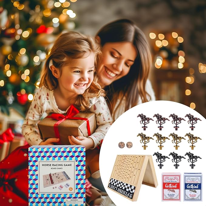 - 【High-Quality & Durable Components】: Built to last with a sturdy game board, 11 detailed horse pawns, premium cards, and two wooden dices. Non-toxic materials and smooth edges make it a safe kids' board game, while the compact size nsures easy storage and travel.