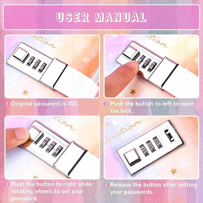 - [ How to Reset Your Password ] - We come with an instruction manual with the lock notebook to help you retrieve your password. If you cannot open the girls diary with lock code or forgot your password, Please Contact us.