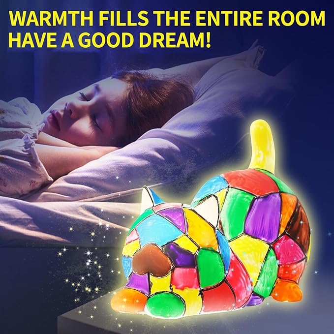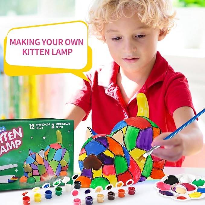 - IGNITE YOUR CHILD'S IMAGINATION: An exceptional gift for any child passionate about art and creativity. This craft kit empowers kids to transform their imaginative ideas into tangible creations on a cat lamp. Through this DIY experience, kids will enhance their fine motor skills, boost their imagination, and build self-confidence while crafting beautiful and unique designs.