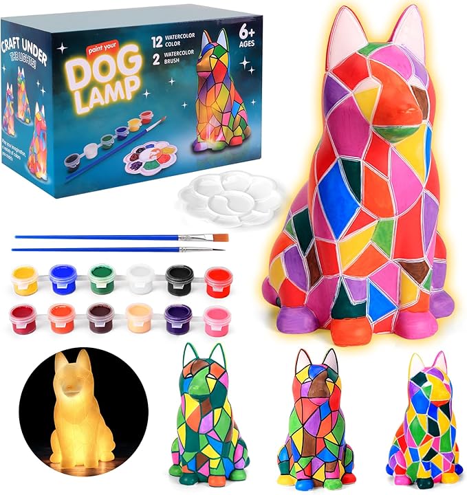 - PAINT & CREATE YOUR OWN CAPTIVATING DOG LAMP KIT: This all-inclusive craft kit provides everything you need to make a dog lamp. It includes a dog lamp, 12 vibrant paint pots, 2 brushes, and a palette, making it an excellent choice for young artists and teenagers who are dog enthusiasts. It's perfect for kids, craft enthusiasts, or anyone who loves hands-on creative projects.