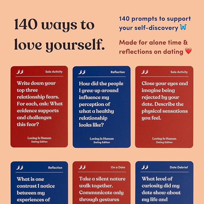 Loving is Human (Dating Edition) | 140 Conversation Cards to Help Deepen Romantic Relationships | Self-Reflections on Dating, Love & Early Relationships | Dating Card Game for 1+ Players