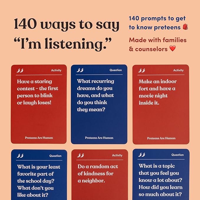 Preteens are Human | 140 Conversation Cards to Help You Get to Know Preteens | Card Game for Middle School Preteens | Designed by Experts for Grades 6-8 | Ages 11-13+