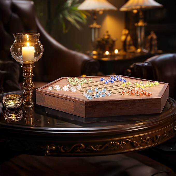 - ELEGANT GAME SET: Chinese Checkers can be played by 2-6 people, playing individually or in groups, rules are easy to follow that everyone can play and have fun. The hexagon shape makes this board game a perfect centerpiece for any table as well when not play, gorgeous decoration for all to admire