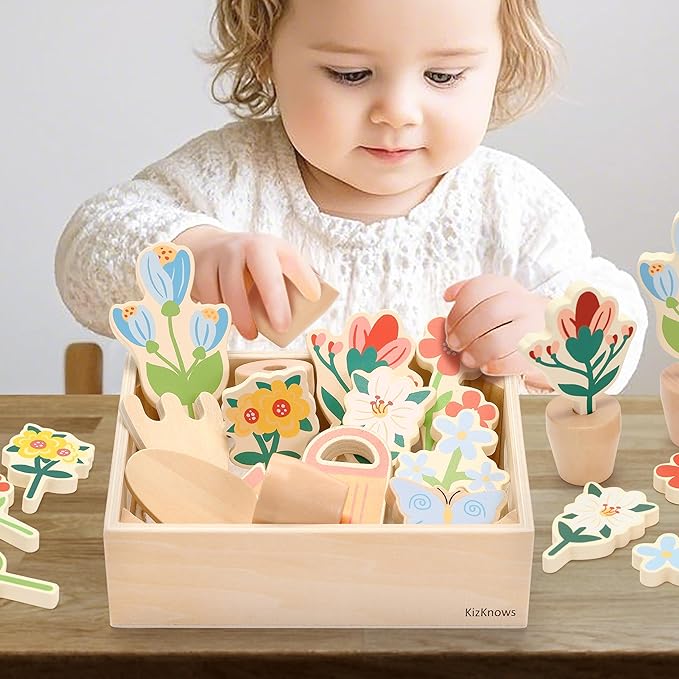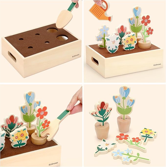 - Creative Garden Design: This mini garden set that includes various wooden flowers and planters that can be freely assembled. Kids can create their own garden landscapes, fostering creativity and imagination