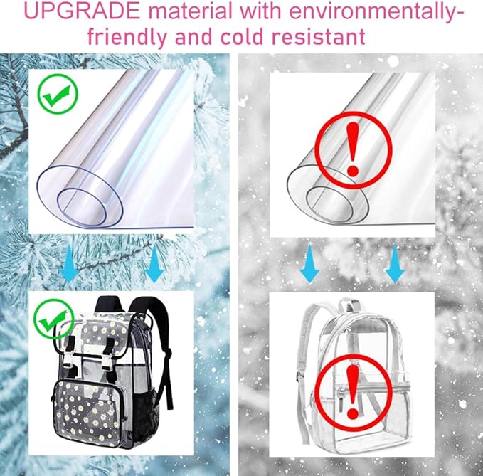 - Heavy Duty Clear Backpack: Transparent backback is made of thickened PVC with reinforced thread stitching at the shoulder strap connections,effectively adding durability to the clear bookbag.