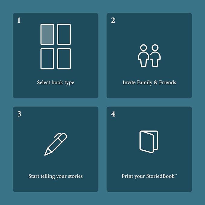 - PRINT YOUR OWN CUSTOM STORYBOOK: Use the included Story Prompt Cards and the Storied mobile app to capture personal memories, family traditions, and cherished experiences. Then, using StoriedBook Studio, easily turn those stories into a beautifully printed keepsake—your own customized StoriedBook, with up to 200 full-color, high-quality pages designed for you ($80 value). We will print your first one for FREE!