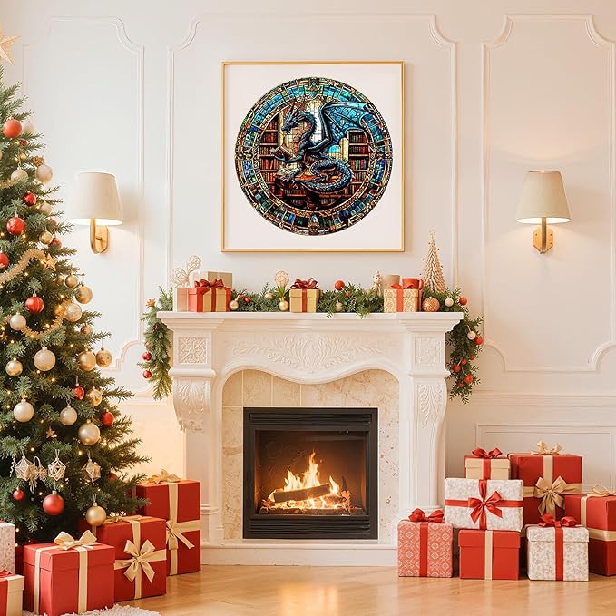 Wooden Puzzles for Adults - The Dragon's Library Wooden Jigsaw Puzzle, Unique Animal Shaped Wood Puzzles Adult, Christmas Birthday Gifts for Friends/Family, Home Decor 13.4 * 13.4in 300pcs