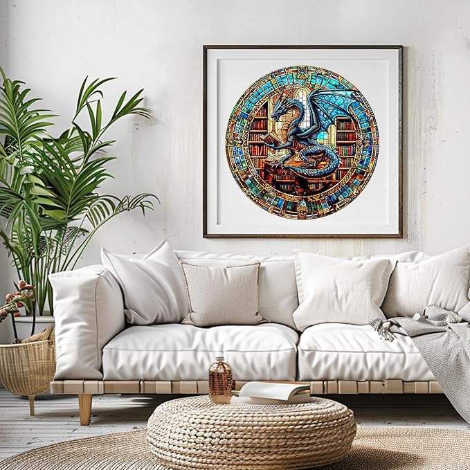 Wooden Puzzles for Adults - The Dragon's Library Wooden Jigsaw Puzzle, Unique Animal Shaped Wood Puzzles Adult, Christmas Birthday Gifts for Friends/Family, Home Decor 8.5 * 8.5in 100pcs