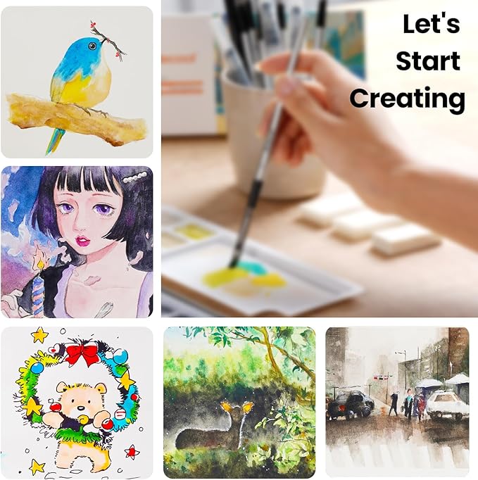 - | High-Quality Watercolor Paints | - The 100 colors in this Watercolor Paint Set use high-quality, artist-grade pigments for purity, transparency, and shine. These fade-resistant, durable paints mix easily, dry evenly, and offer excellent flow and solubility. Ideal for various techniques, they bring rich, vibrant colors to your artwork. Additionally, the drawing art supplies come with high-quality accessories, providing everything you need in one set for an enjoyable painting experience