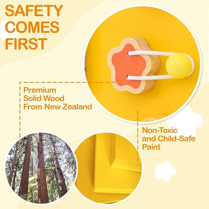 - SAFETY FIRST: Crafted with the highest quality solid wood from New Zealand, our busy board has passed rigorous safety tests and received the Children's Product Certificate from a CPSC accredited laboratory, ensuring a safe play environment for little ones.