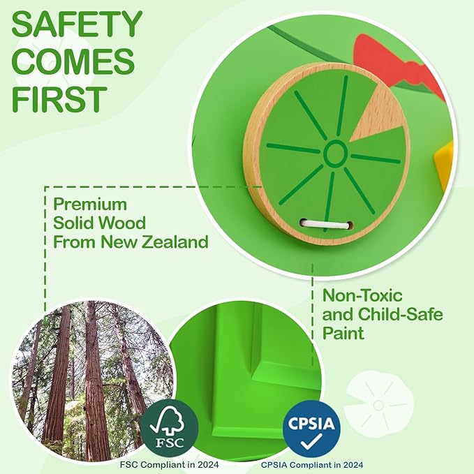 - SAFETY FIRST: Crafted with the highest quality solid wood from New Zealand, our busy board has passed rigorous safety tests and received the Children's Product Certificate from a CPSC accredited laboratory, ensuring a safe play environment for little ones.