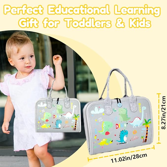 - Portable and Travel-Ready: Take learning on the go! Our compact, lightweight toddler busy book (11x8.2in) features a convenient handle, making it easy for little hands to carry. It fits easily into diaper bags or backpacks, making it the perfect travel toys for toddlers 1-3. Whether on a road trip or airplane journey, this toy keeps your child engaged, entertained, and learning-turning travel time into a fun, educational adventure
