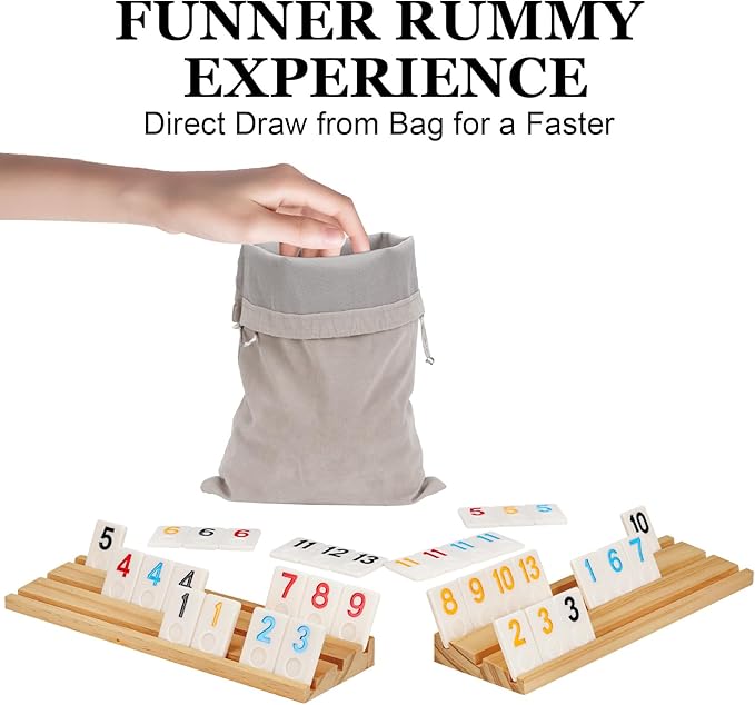 - COMPLETE SET INCLUDES: This 2-8 players board game set comes with 214 tiles, 8 non-slip wooden racks, a portable zippered case, drawstring bag, a dice and an instruction. Case safely stores the tiles and components, making it easy to take anywhere