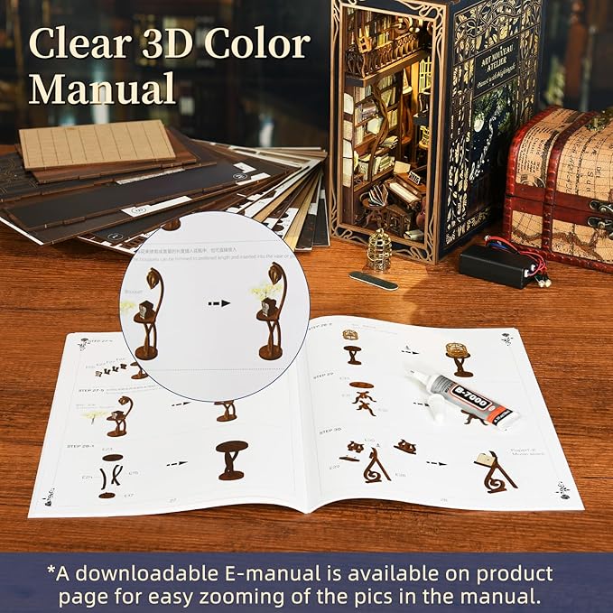 - [Bring Fun to Life] The diy book nook kit combines fun and relaxation. During the 6-10 hours of enjoyable assembly time, you can improve your dexterity and patience with this miniature dollhouse booknooks.Additionally, the downloadable E-manual can be zoomed to help identify parts orientation more clearly