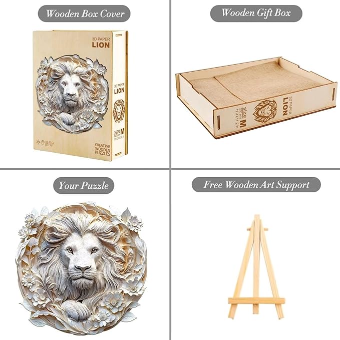 Wooden Puzzles Adults, 3D Paper Lion Wooden Puzzles 200 Pieces, Unique Animal Shaped Wood Challenging Jigsaw Puzzles Gifts for Adults, 11.4x11.2in