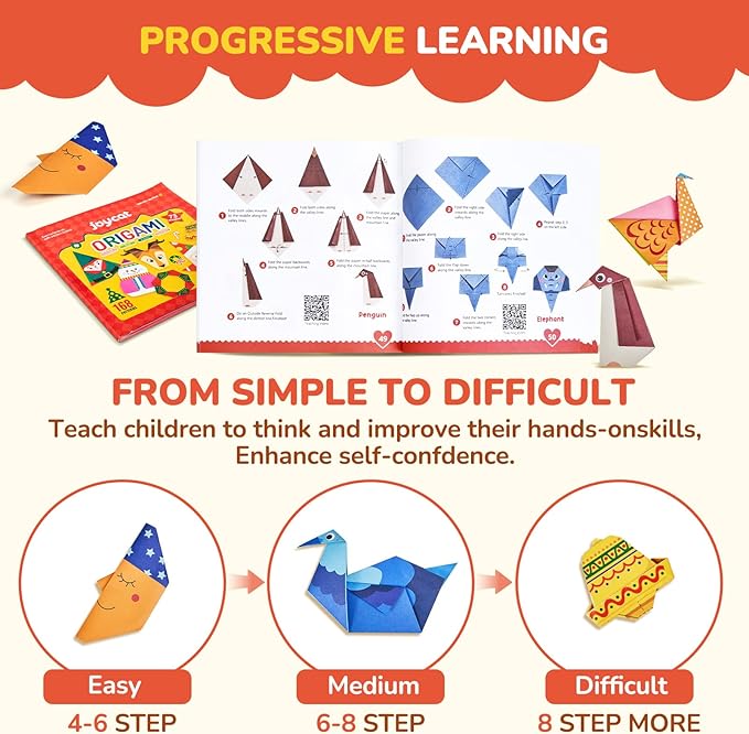 Joycat Origami Paper Kit For Kids,180 Sheet 5.5x5.5"Colorful Paper,73 Unique Pattern with Instruction Book,Art&Crafts Activitiy Supply set for Ages 5-12,Ideal DIY Project,Educational Toy,Gift For Kids