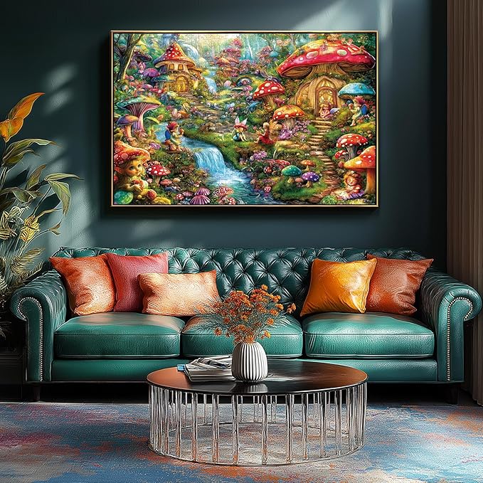 - 【PERFECT GIFT】High-quality difficult unique merry mushroom cottage puzzles for adults 1000 pieces and up is wrapped in a sturdy, gift-ready box,cool puzzles for adults Is the perfect gift for Birthday and Christmas thanksgiving gifts for kids, lover, friend, colleagues and parents. After the puzzle is completed, adult jigsaw puzzles 1000 pieces can be used as a mural (Suggested frame size: length 70.3cm/width 50.3cm),to decorate your living room,the beautiful and coolest Home Decora funny puzzles for adults