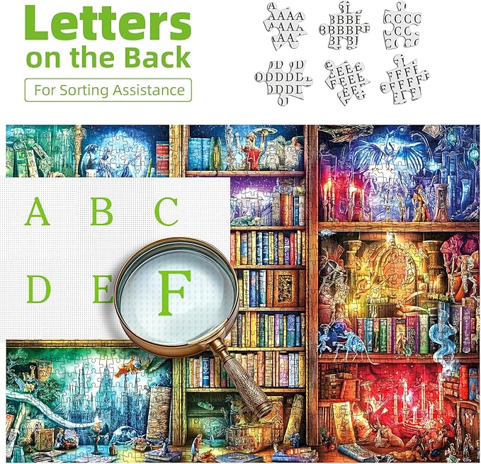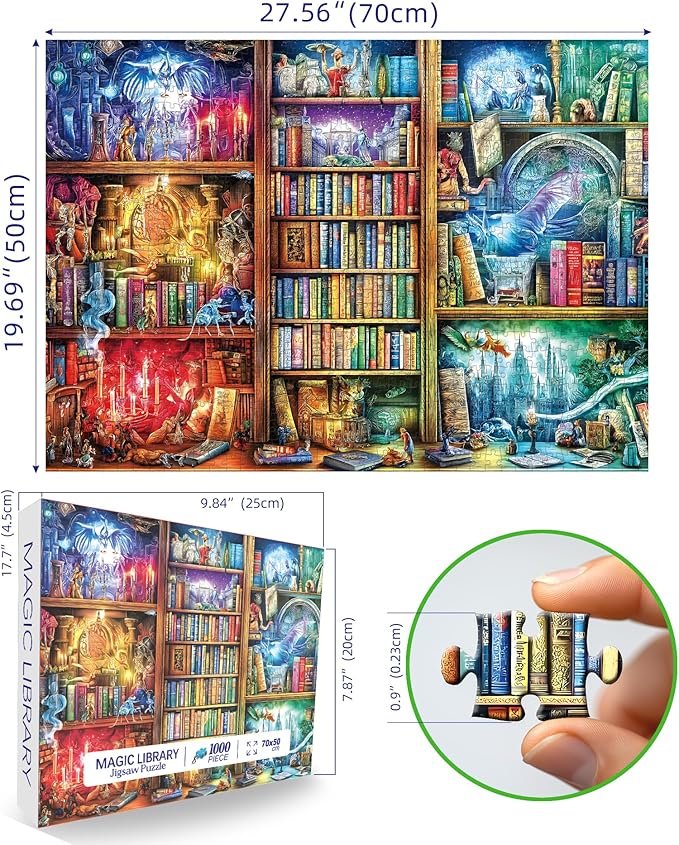 - 【jigsaw puzzles 1000 pieces for adults 】Magic Library Books adult puzzles Includes 1000 piece puzzle for adults clearance and a bonus glare-free puzzle poster; coolest adult puzzles with exquisite packing box . jigsaw puzzles for adults with letters on back helps you complete the puzzles more effectively, adult puzzles 1000 pieces and kids ages 14+. Finished Size: 27.56" x 19.69"/70*50cm