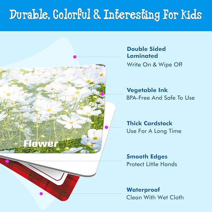 - Safety And High Quality: Made of thickened cardboard for durability, neither bend nor fold. Printed with non-toxic plant ink, which will not release harmful substances. The round and smooth edge is harmless, suitable for small hands. Also, it is easy clean with a damp cloth. Each card measures 2” X 2”.