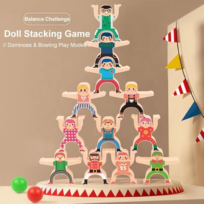 - [16-Piece Balancing Game]: This Wooden Stacking toys Circus Acrobatic balance building block includes 16 colorful smiling and funny Circus boys and Hercules girls, Each Building Blocks with a corresponding number (1-16), Additional 2 balance boards.