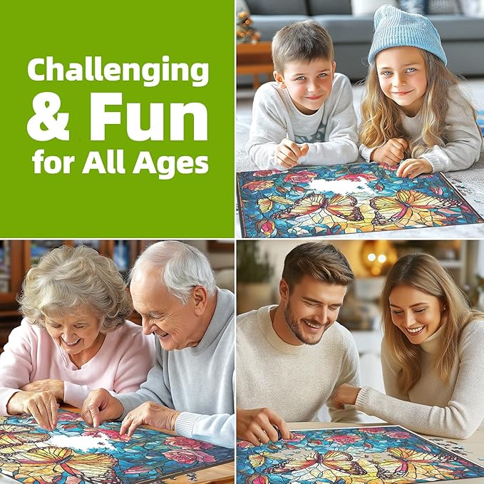 - ๐ฆ MESMERIZING 1000-PIECE STAINED GLASS ART Assemble a floral kaleidoscope with 50+ vibrant butterfly species and mosaic blooms. Includes high-gloss reference poster. Finished 27.5"x19.7" โ transforms into museum-worthy wall art.