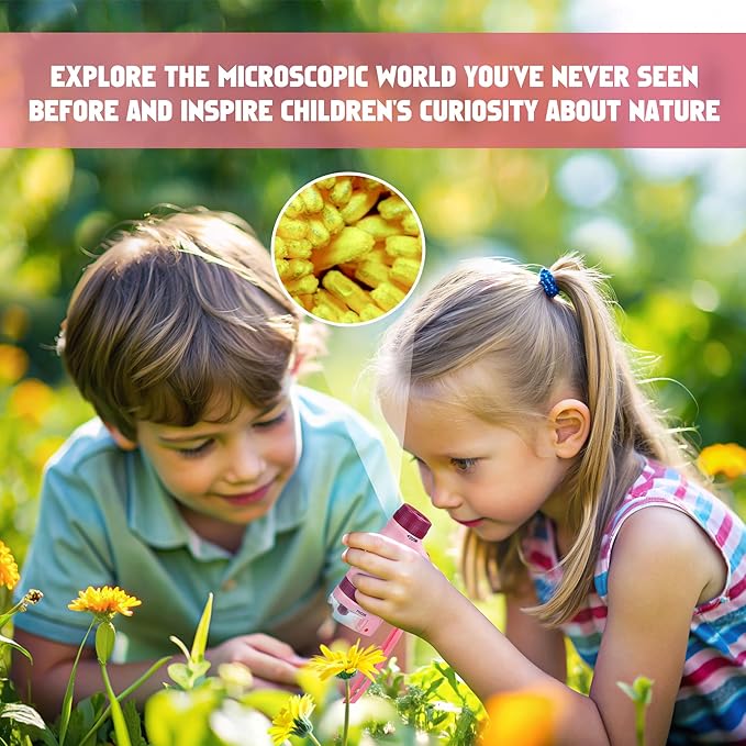 - Educational and Fun toys:Our microscope is easy to operate and does not require you to make slides, so kid can directly observe anything in life. When you give this gift to your baby, he will be amazed to look around with the microscope and explore the microscopic world that he has never seen before, starting the journey into STEM learning.Child's active exploration is often much more effective than passive learning.