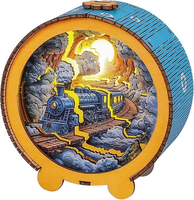 3D Puzzle Nightlight-DIY LED Light Wooden Puzzle-Art Lamp and Craft Kits for Kids and Adults-Birthday Gifts Toys-Home Desk Decor Family Game (Steam Train)