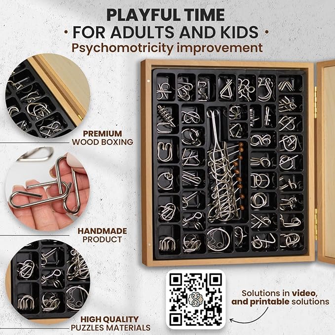- ๐ Built to Last, Fun for All Ages: Made with high-quality metal thatโs smooth to the touch and free from sharp edges, these puzzles are designed for safe, long-lasting fun. From ages 6 to 106, everyone can join the challenge and experience the joy of solving.