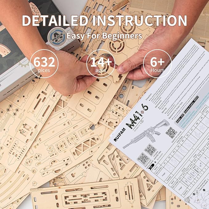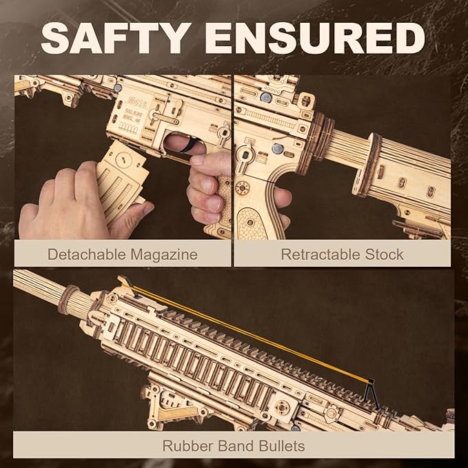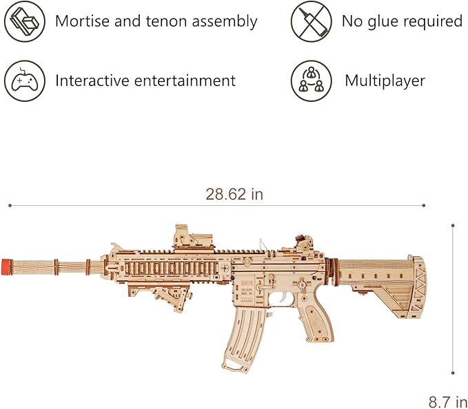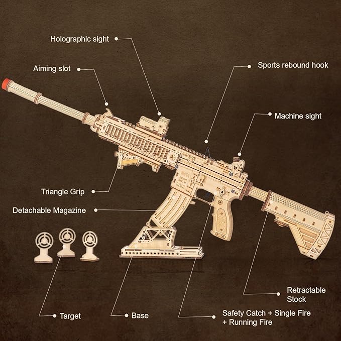 - [Product Features]: This exquisite wooden puzzle consists of 632 precisely cut parts, and once assembled, it delivers an unparalleled sense of accomplishment. As a finely crafted wooden toy gun, it offers two shooting modes: continuous fire and single shot, providing double the fun and challenge.