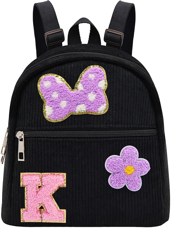 - 【Cute Toddler Girl Gift】: This corduroy small backpack with glitter chenille initial letter mouse bow Patch is not only a preferred birthday gifts for 2 3 4 5 6 year old girls, but also best gifts for wedding flower girls. Especially when Children's Day, back to school, Thanksgiving and Christmas come around, it's a perfect gifts for toddler girls, girls' besties, even a surprise gift from grandpa, grandma, dad, uncle to beloved granddaughter, daughter, niece.
