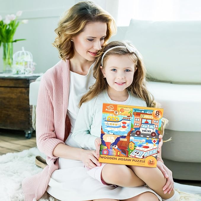- 🚗【Jigsaw Puzzle for Toddlers】Zeoddler Jigsaw Puzzles Set is the PERFECT CHOICE for you and your toddlers as it is made from natural wood, printed with well designed. This montessori toys is suitable for toddlers and represents the perfect activity to learn through play!