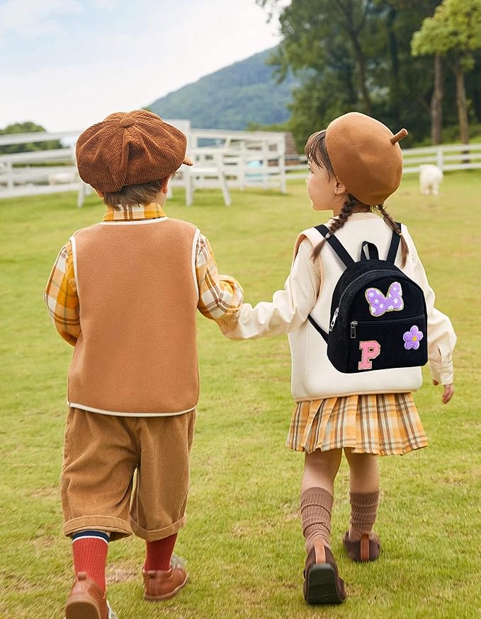 - 【Cute Toddler Girl Gift】: This corduroy small backpack with glitter chenille initial letter mouse bow Patch is not only a preferred birthday gifts for 2 3 4 5 6 year old girls, but also best gifts for wedding flower girls. Especially when Children's Day, back to school, Thanksgiving and Christmas come around, it's a perfect gifts for toddler girls, girls' besties, even a surprise gift from grandpa, grandma, dad, uncle to beloved granddaughter, daughter, niece.