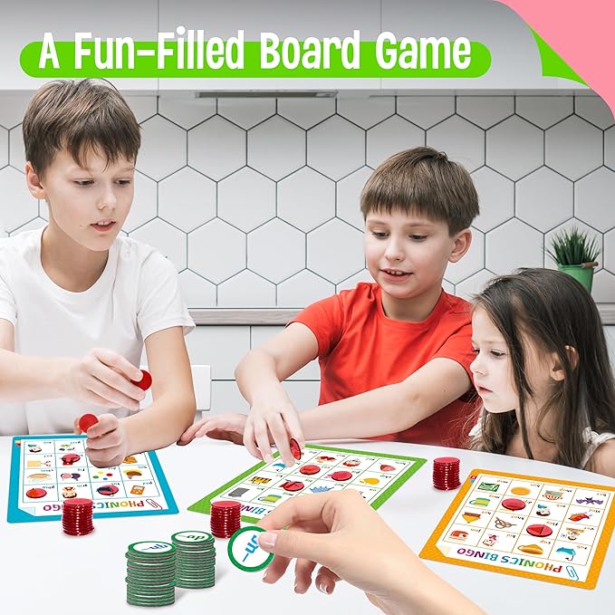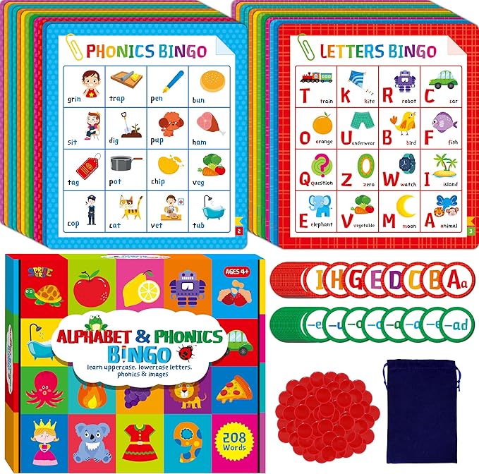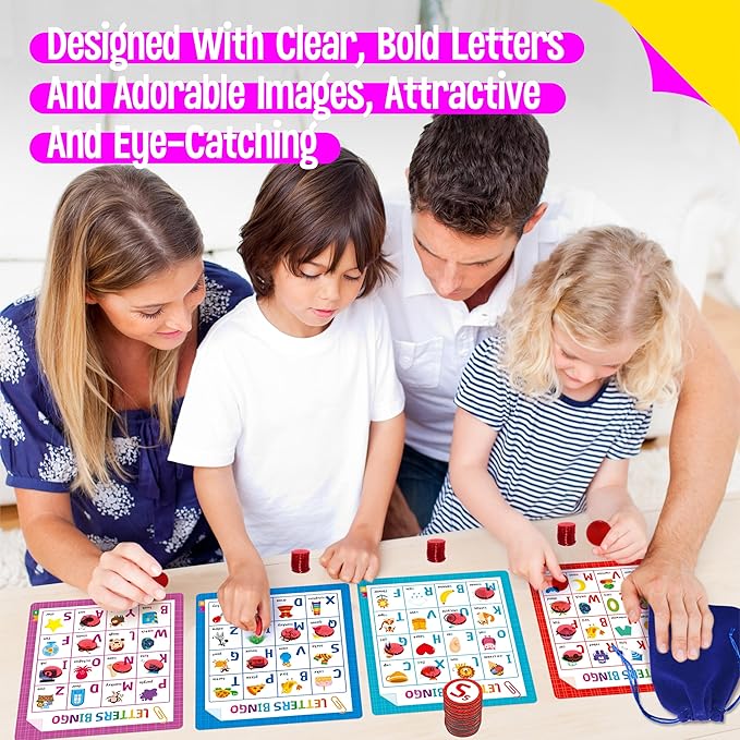 - Fun and Engaging Alphabet Learning: This alphabet & phonics bingo game offers an enjoyable way for children to familiarize themselves with the letters while developing essential literacy skills. Each bingo board is thoughtfully designed with clear, bold letters and vibrant illustrations, making it easy for young learners to recognize and remember the letters and words in an engaging and interactive setting.