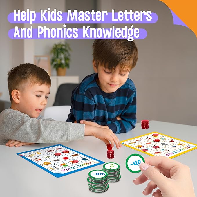 Alphabet & Phonics Bingo Game, 12 Bingo Boards ABC Letters, CVC Blends Words Phonetic Game, Letters Phonetic Awareness Early Educational Learning Toys - Ages 4 and up, Perfect for Classroom & At Home