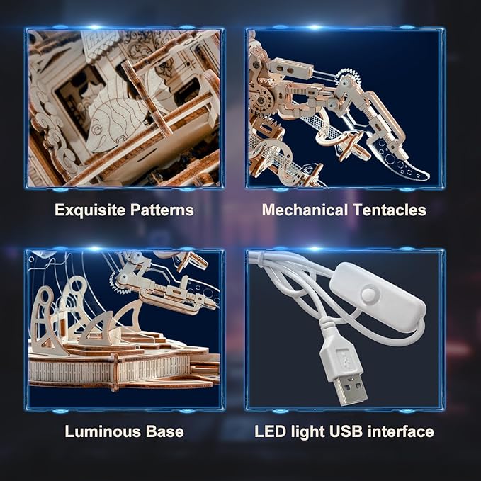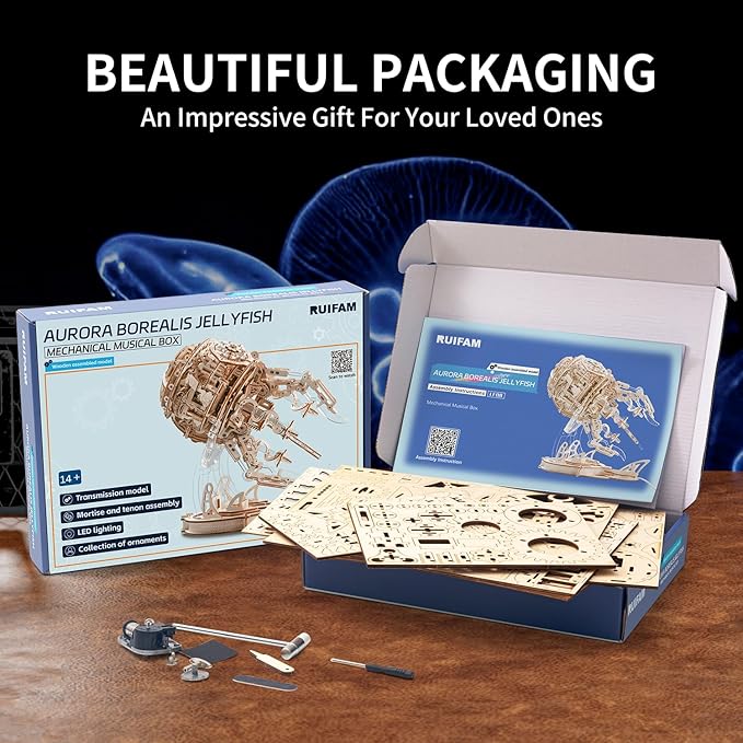 - [Product Features]: This exquisite wooden puzzle consists of 355 precisely cut parts, and once assembled, it delivers an unparalleled sense of accomplishment. When the jellyfish starts swimming and the LED lights up, there will be a feeling of being there