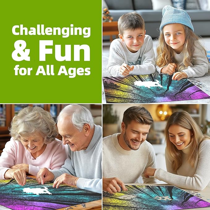 - ๐ Vibrant Gradient Nightscape & Poster Assemble this 1000-piece puzzle featuring mystical starry skies with purple-to-yellow color shifts. Includes high-res reference poster (27.5x19.7") + gift-ready storage box. Ultra HD printing captures every celestial detail.