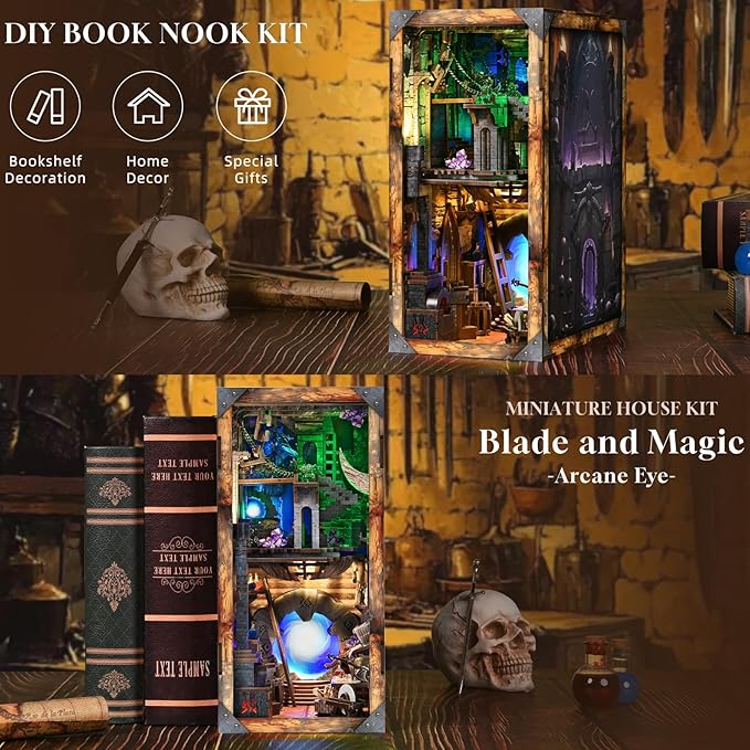 Book Nook Kit, DIY Miniature House Dollhouse Kit for Adults and Teens, Booknook Tiny House Bookshelf Decor (Blade and Magic)