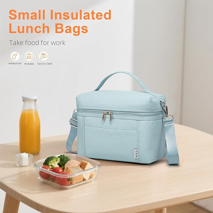 NOL Natural Organic Lifestyle Insulated Lunch Bags for Women Cooler Bag Lightweight Nylon Waterproof Lunch Box For Work (Small, Light blue)