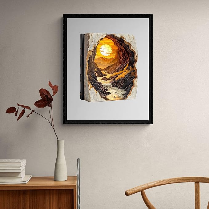 - Stunning 3D Sunset in Book Visuals: our 3D visual wooden puzzle features a captivating scene of a sunset within a book frame. The warm, orange red hues of the setting sun seem to radiate out, with rays filtering through the clouds and casting a golden glow. The details, from the shape of the sun to the softness of the clouds, are so vivid that it feels like you're peeking into a real-life sunset moment. As you assemble the puzzle, the 3D effect makes it a truly immersive visual experience